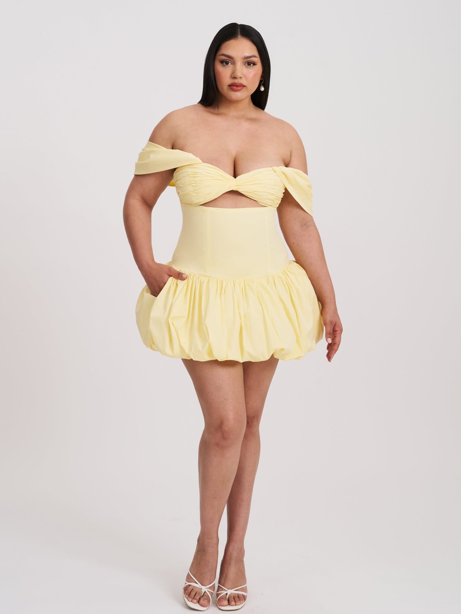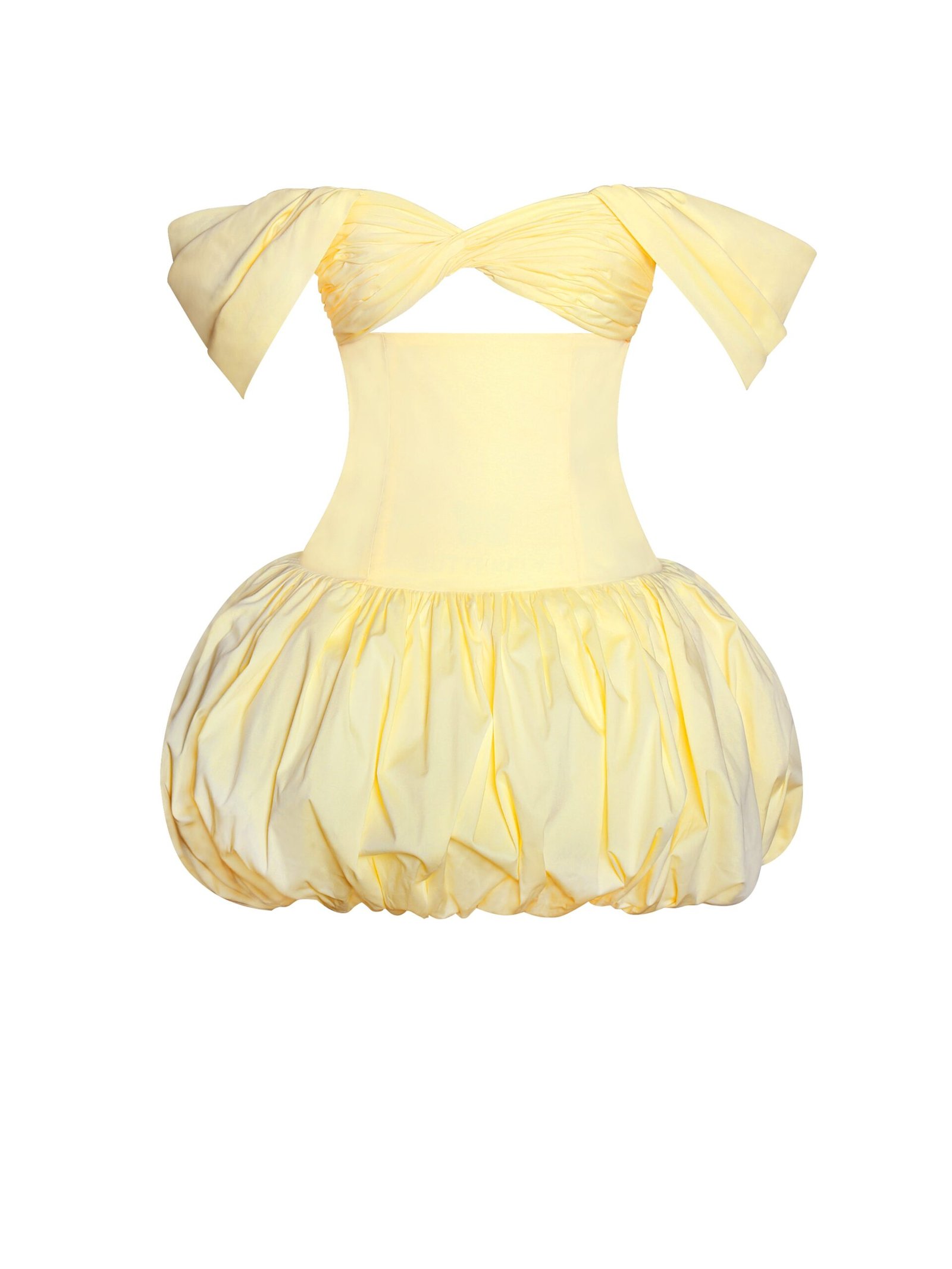 Be the first to review “Umika Butter Yellow Bubble Hem Mini Dress”